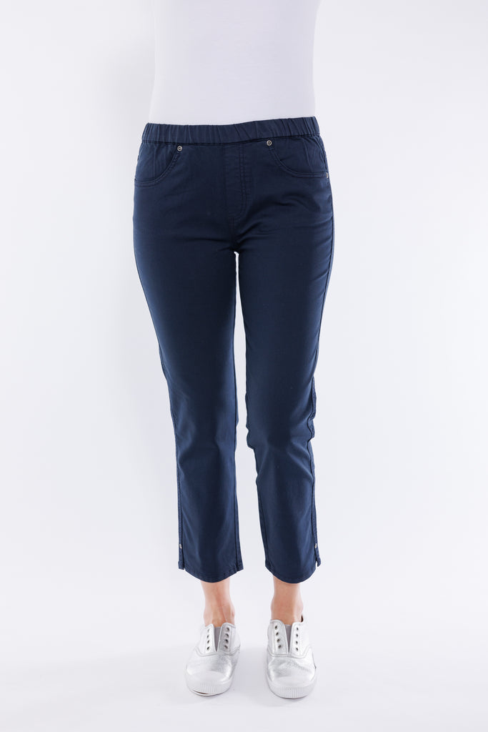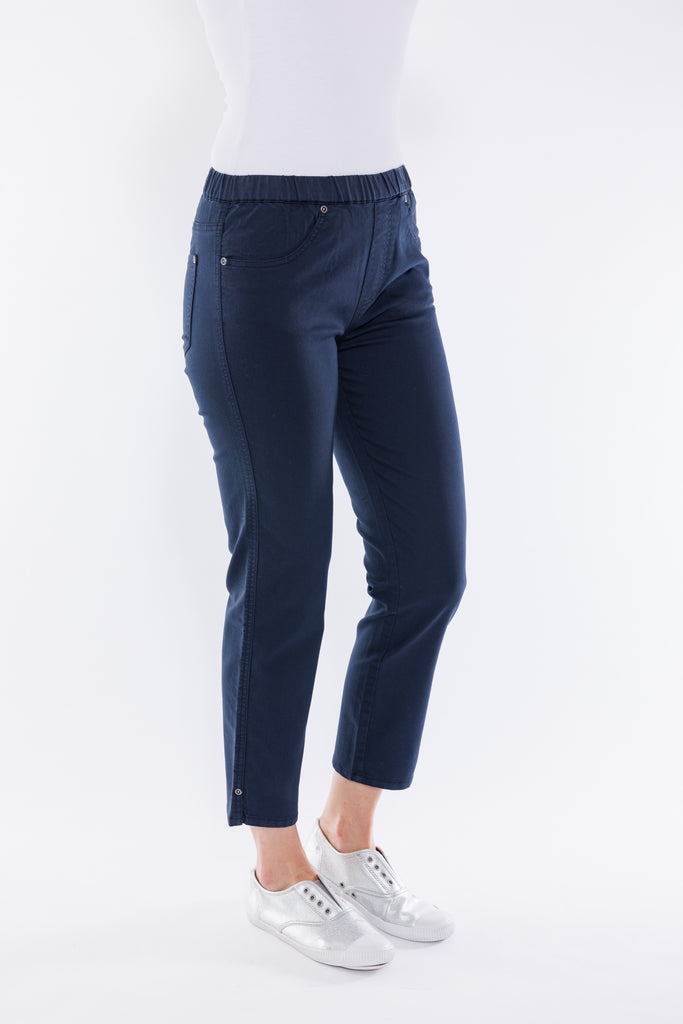 The cropped jeans by Café Latte in Navy are designed to offer both comfort and a sleek, stylish look.