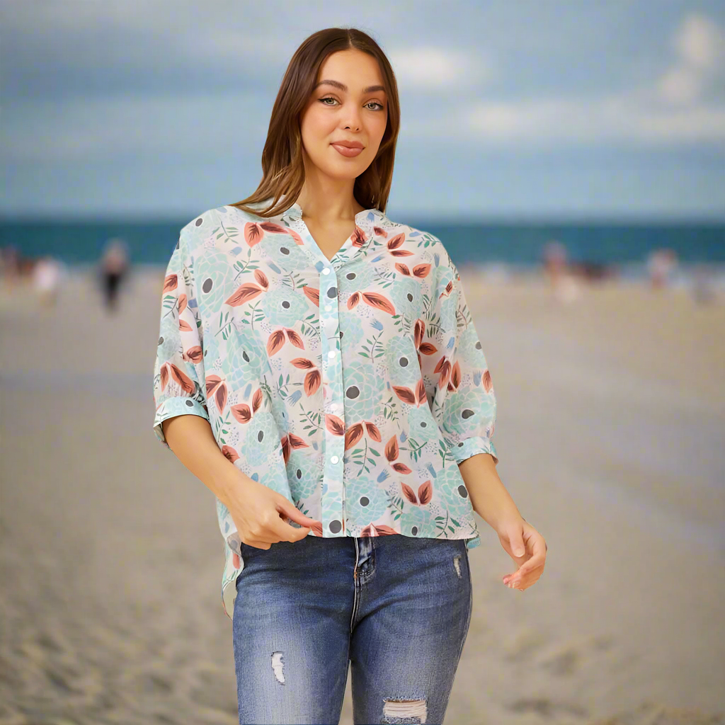 Add a stylish twist to your holiday wardrobe with our shirt. Style it with jeans and sneakers for a casual autumn look or match it with linen pants and sandals for a vacay vibe!