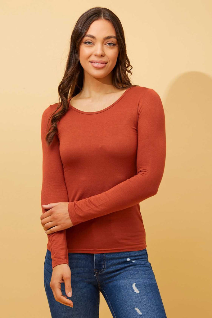 Long Sleeve Fitted Top - Rust