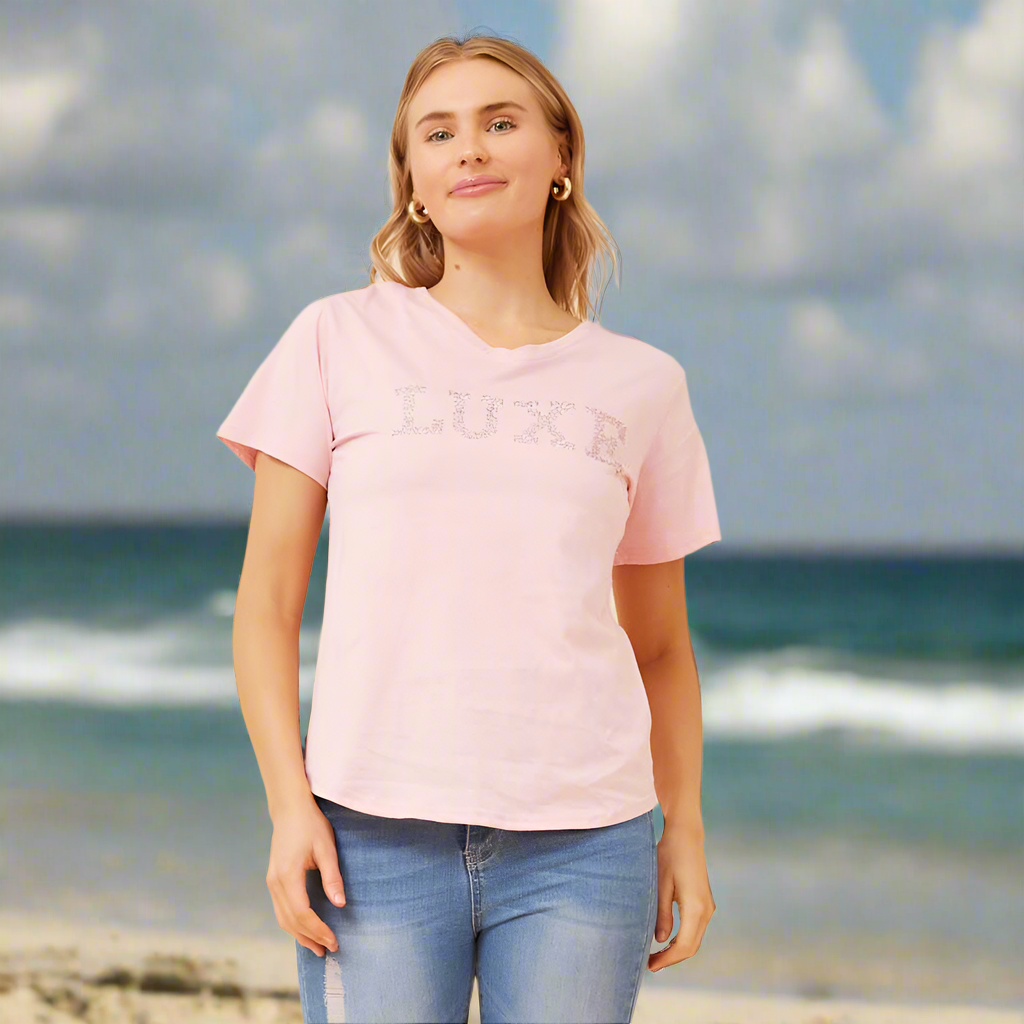 Elevate your everyday style with our  tee. This versatile piece is great for layering or wearing solo. Easy to style with jeans, shorts or skirts, pair with your favorite runners for an easy everyday style!