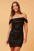 Turn heads in this dazzling off-shoulder sequin short party dress that effortlessly combines glamour with playfulness. The shimmering sequins catch the light, creating a stunning effect as you dance the night away. Pair it with strappy heels and minimal accessories to let the dress take center stage.