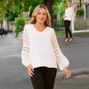 Stay chic and stylish with our Long Sleeve Puff Sleeve Top in white. Made from soft, lightweight fabric, this top features long puff sleeves that add a dramatic touch to your look. Perfect for any occasion, this top is a must-have for fashion-forward individuals.