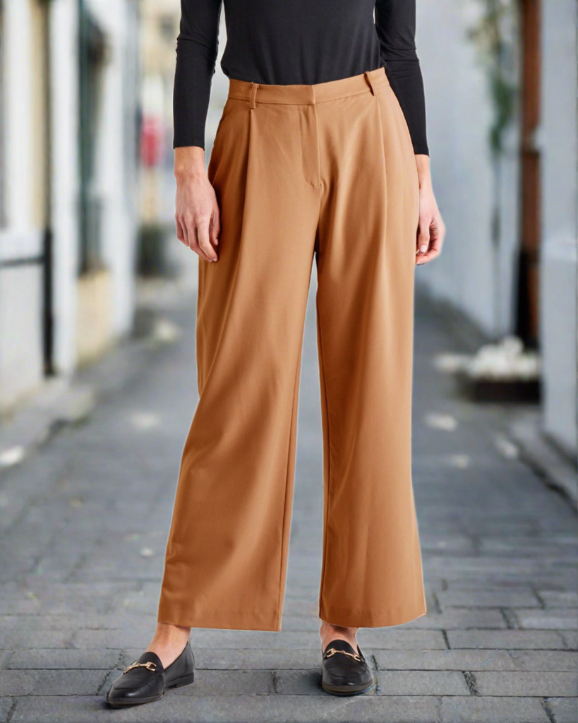 Pamela Mid-High Rise Relaxed Leg Elasticated Pant - Camel