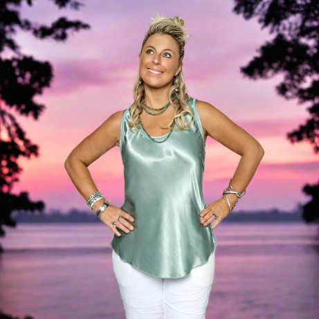 Stylish singlet with a satin look front and stretch knit back for comfort. Fabulous for layering. Available in 3 sizes.
