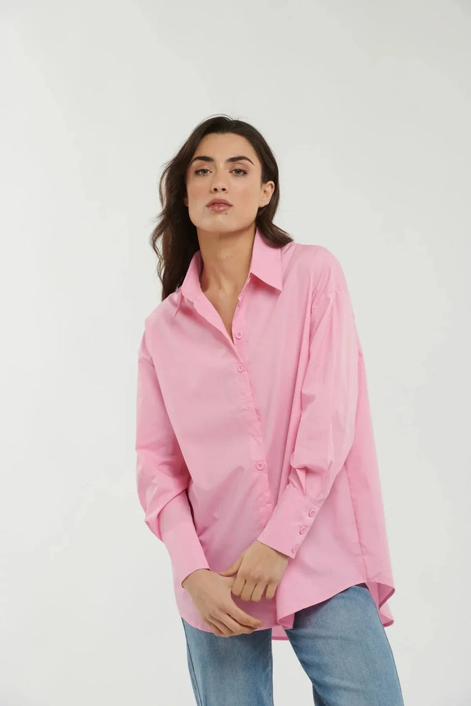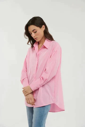The 365 Days Boyfriend Shirt is oversized and on trend with it's flattering high low step hemline.  The three buttoned wide cuff detail gives this classic shirt a tailored edge.  Pair with your favourite dress pants or unbuttoned over a tee with your jeans and sneakers for a smart casual look.
