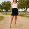 A feminine cut and gorgeous movement that flows when you walk! With an elastic waistband with drawstrings for easy pull on and side pockets, our paperbag linen shorts will flatter every shape and size!