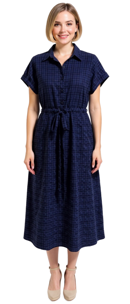 Elevate your everyday wardrobe with this refined café latte dress, featuring a sophisticated self-check textured fabric that adds subtle visual interest. The adjustable drawstring waist creates a flattering silhouette, while the classic collar and short sleeves deliver timeless elegance. Practical front pockets and finished sleeve cuffs complete this versatile piece, perfect for transitioning seamlessly from day to evening occasions.