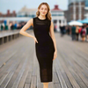 Expertly crafted in sleek black knit, this midi dress is a must-have for any fashion-forward wardrobe. With its form-flattering silhouette and durable fabric, it's perfect for any occasion. Elevate your style with this timeless piece and feel confident all day long.