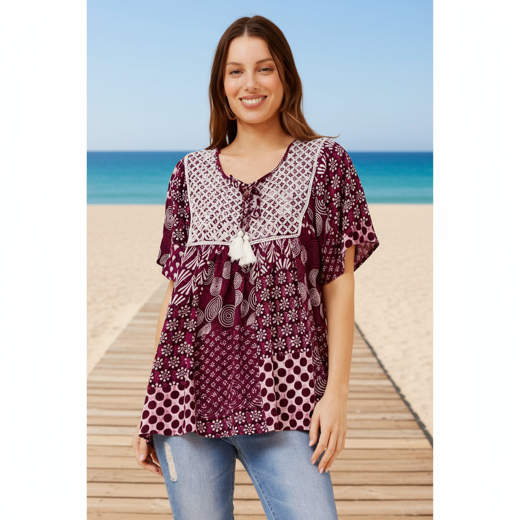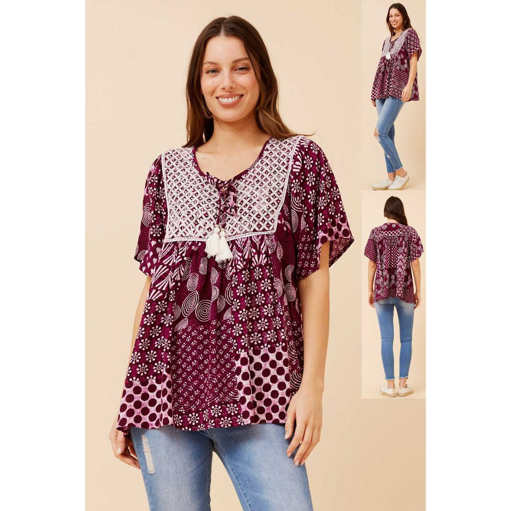 Boho Patchwork Top - Berry