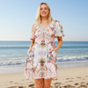 Our Rhys dress features a romantic arabesque print and is perfect for your next brunch date. Pair it with sandals or heels to complete your look!
