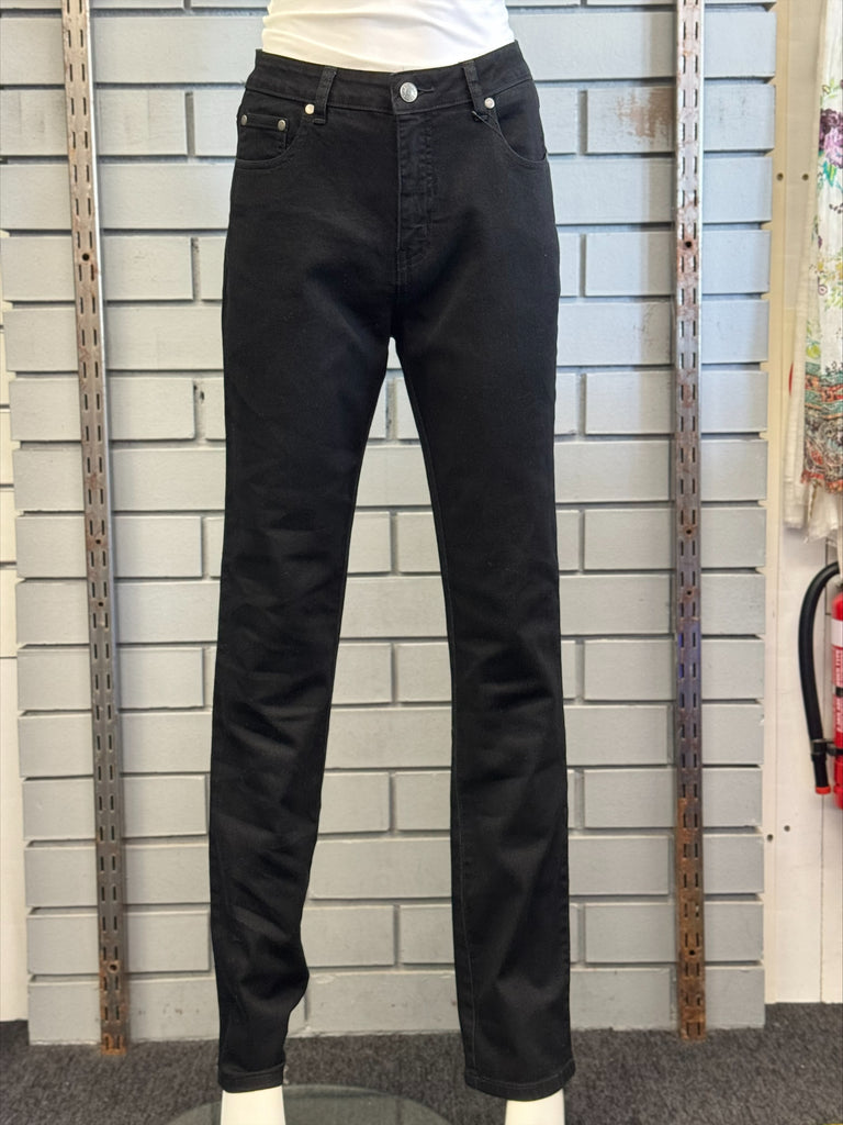 Upgrade your denim game with our Stretch Cotton Denim 5 Pocket Jean in classic Black. Made with a blend of cotton and spandex, these jeans offer a comfortable and flexible fit. Complete with 5 pockets, they are both stylish and practical. Elevate your wardrobe today.