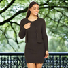 This stylish dress set is the perfect combination of form and function. The dress is made of soft, breathable fabric for lasting comfort and quality, while the matching cardigan provides added warmth and style. The timeless design can be dressed up or down for any occasion.