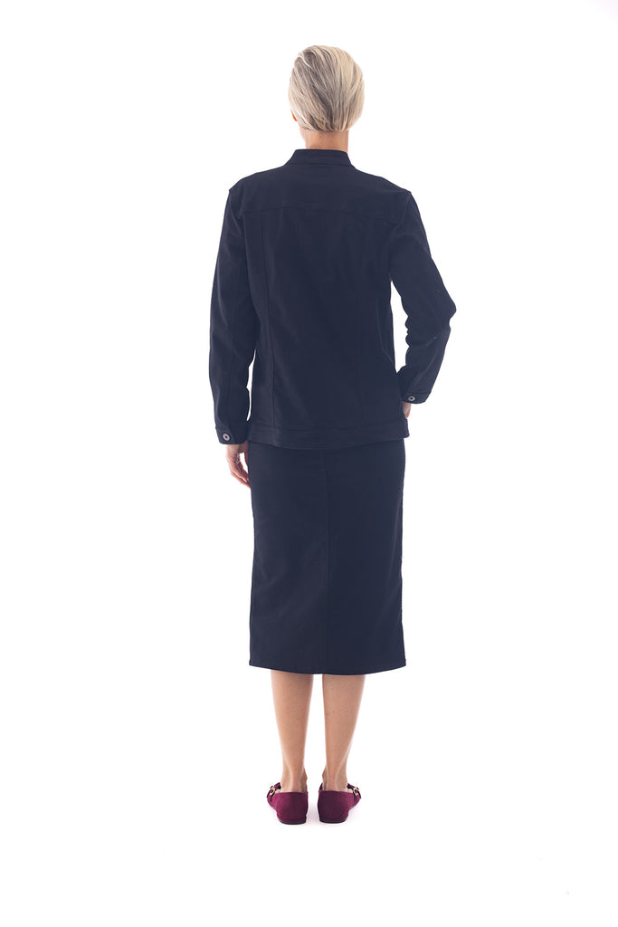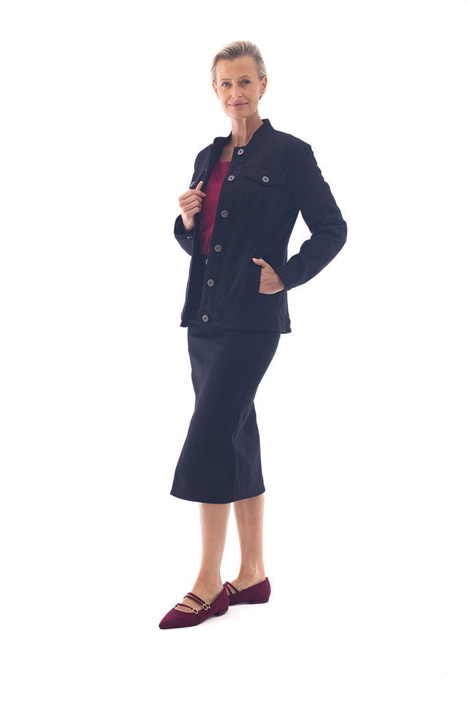 A Jean Jacket from Cafe Latte is a stylish and comfortable piece of clothing that features several design elements. The jacket has a Mandarin collar, which is a short, stand-up collar typically seen on Chinese-inspired garments. The collar adds a touch of elegance and sophistication to the jacket.