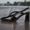 These strappy leather slingbacks by Django & Juliette have killer curves. KENZY has a pointed pump silhouette with a moulded block heel and adjustable ankle strap.