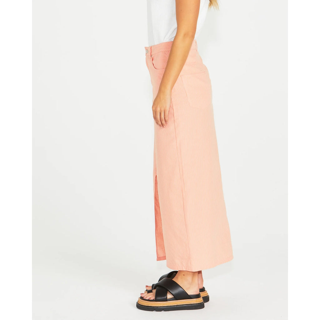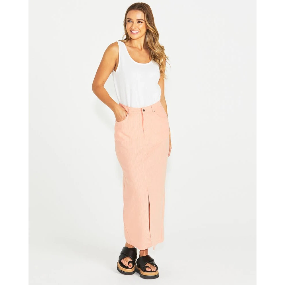 The Liberty Maxi Skirt, with its straight design and front button fastening, offers an effortlessly chic vibe. With four pockets for added functionality, it?s perfect for all-day wear. Pair it with a tucked-in blouse or tee for a polished look.