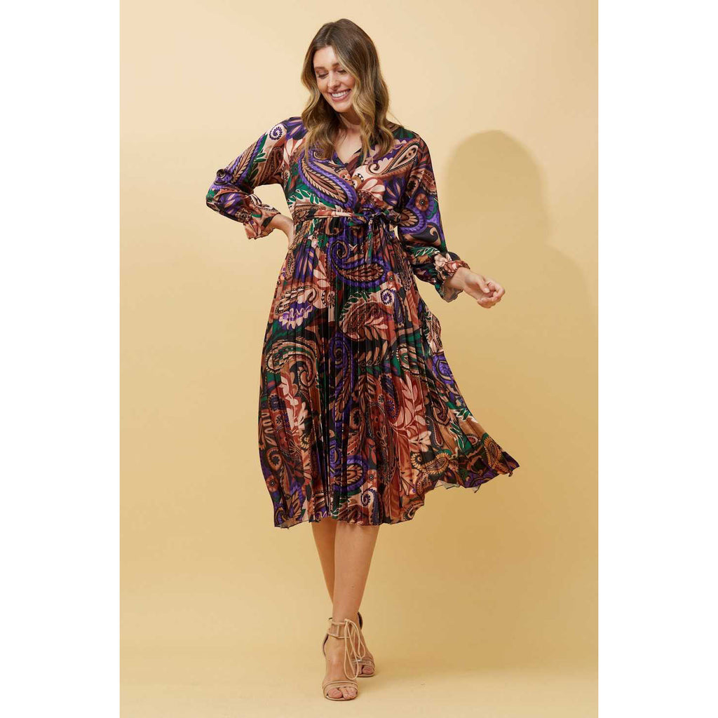 This long sleeve midi dress in a vibrant multi-purple pattern offers both style and comfort. The included belt cinches the waist for a flattering silhouette, while the midi length provides elegant coverage suitable for various occasions. Its breathable fabric ensures you stay comfortable throughout the day, making it a versatile addition to your wardrobe. Perfect for dressing up or down, this dress supports your confidence with effortless charm.