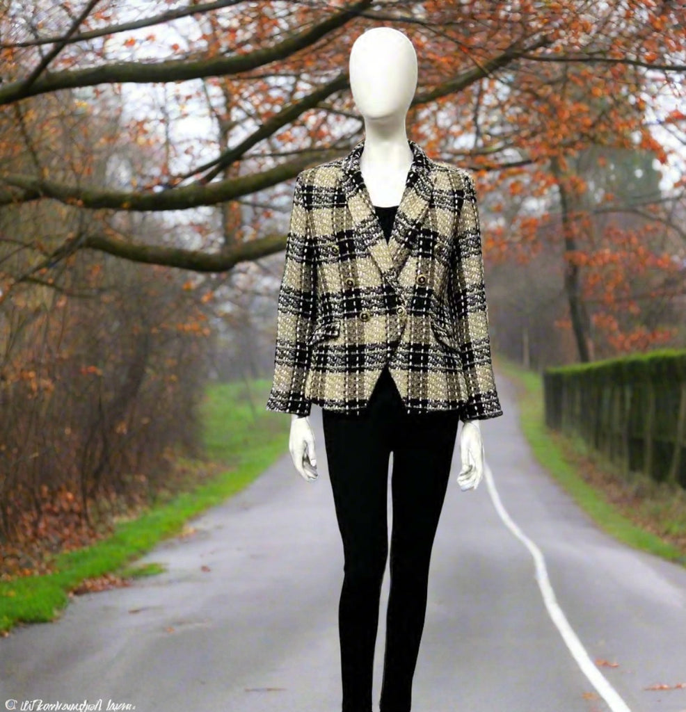 This Plaid jacket is made from a blend of durable polyester and warm wool, providing both functionality and comfort. Perfect for cooler weather, this stylish jacket is the perfect addition to any wardrobe.
