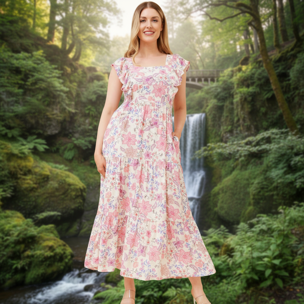 Effortlessly elegant, this short sleeve maxi dress in soft pink offers timeless sophistication for any occasion. The flowing silhouette skims the body gracefully, while the classic short sleeves provide refined coverage. Perfect for summer gatherings, evening events, or elevated casual wear, this piece transitions seamlessly from day to night. The understated design allows for versatile styling with minimal accessories, making it an essential addition to any refined wardrobe.