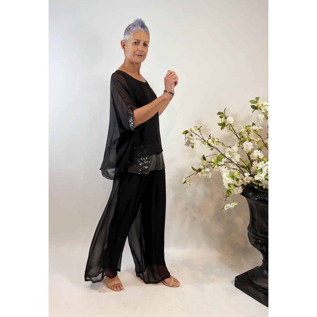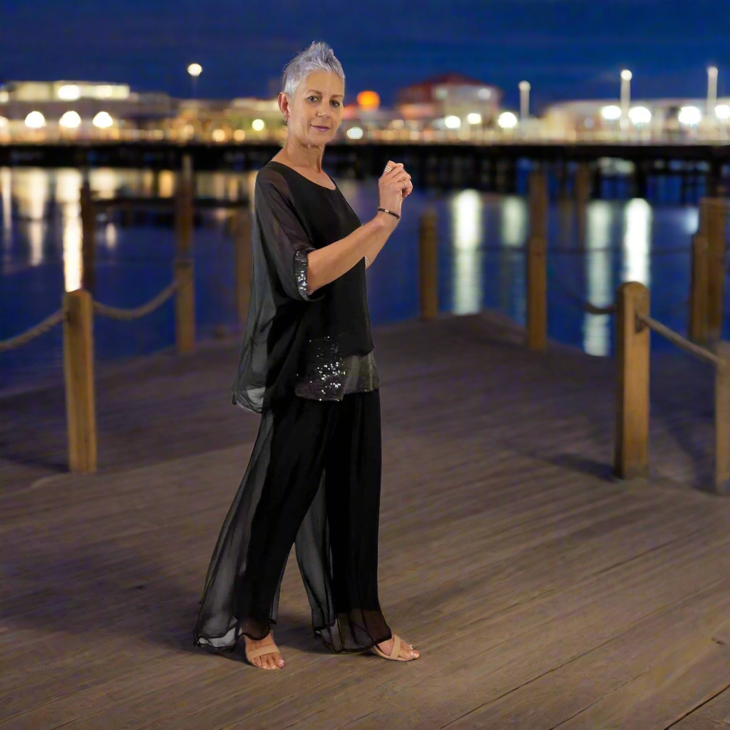 The Silk Wide Leg, a super stylish, super comfy must-have perfect dressed up or down. Crafted from a ultra soft silk blend outer overlay and a stretch inner lining with a supportive wide elasticised waistband this relaxed fitting silhouette finishes at the ankles on-most.