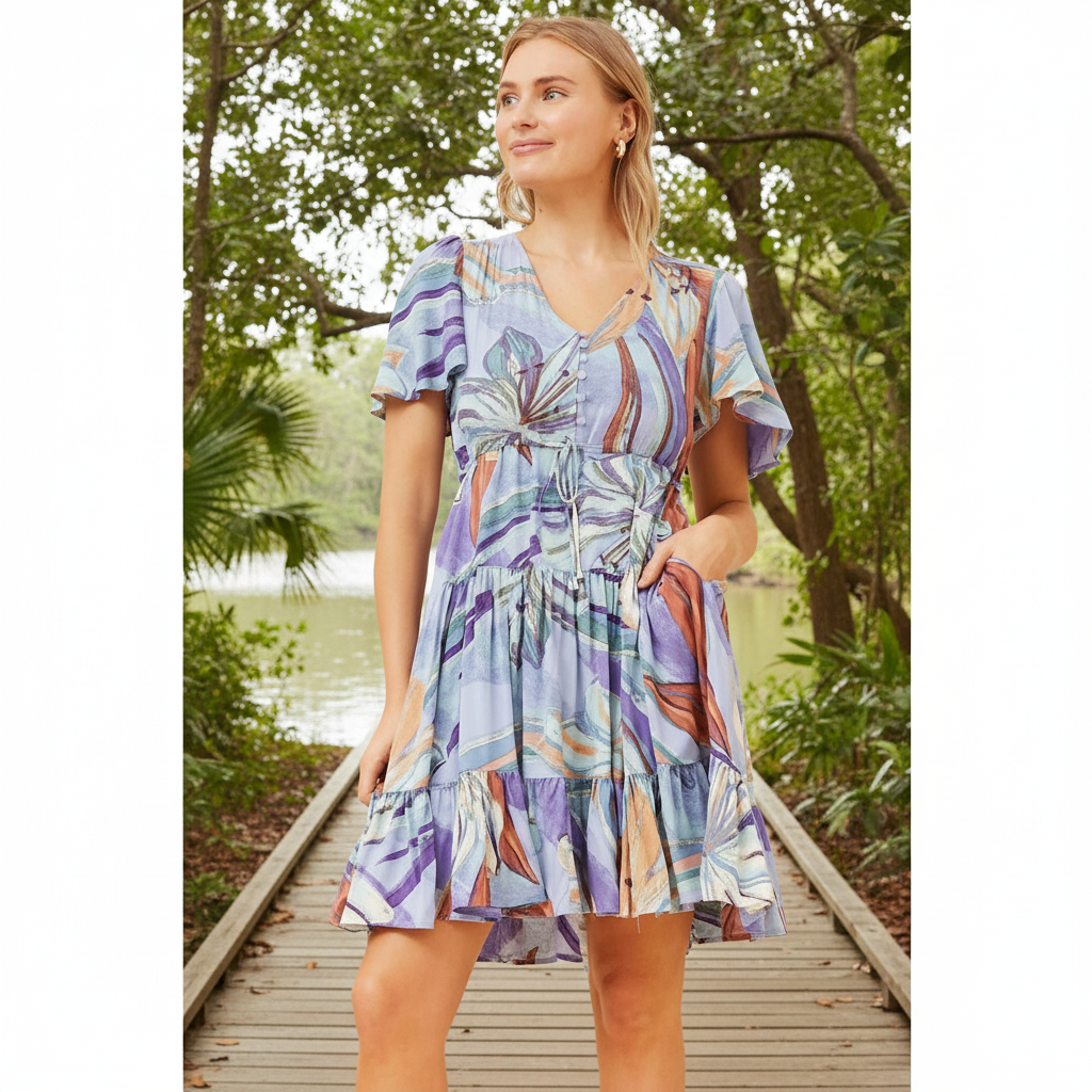Add this new print to your summer wardrobe. This dress is perfect for your next garden party! Pair it with strappy sandals for an elevated look!