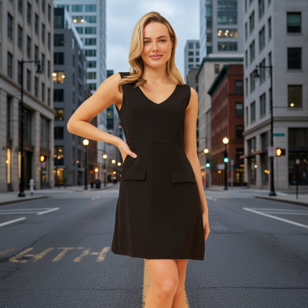 Elevate your wardrobe with this sleek sleeveless mini dress in classic black. Designed for a flattering fit, its minimalist silhouette offers effortless elegance for both day and evening occasions. Perfectly tailored to highlight your figure, this dress pairs seamlessly with heels or flats, making it a versatile staple for refined style.