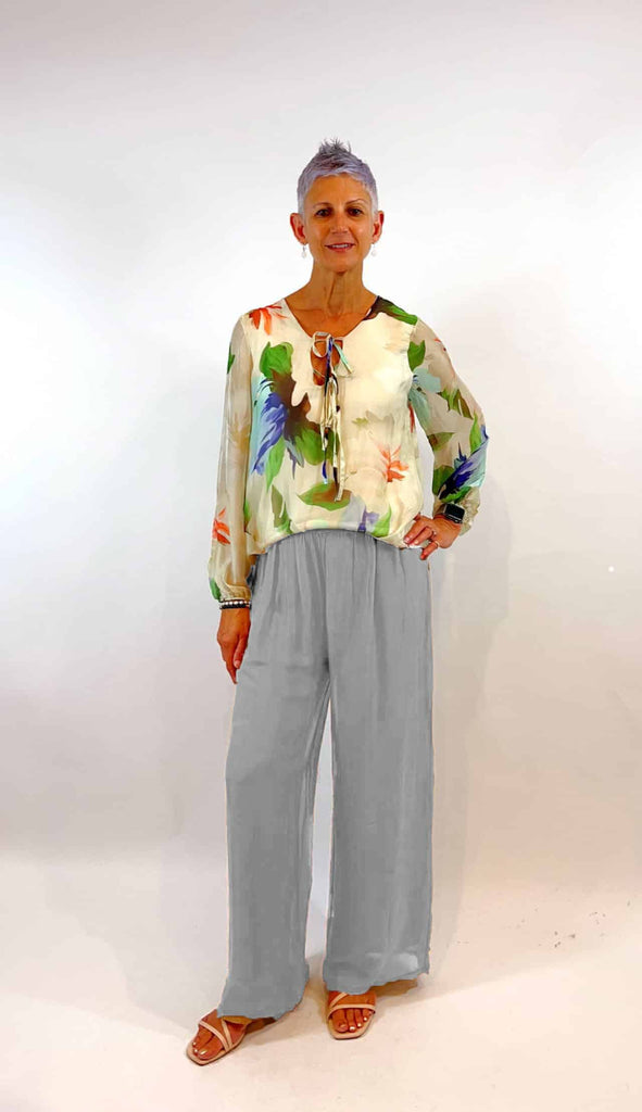 Experience both comfort and style with our Silk Blend Pants in Grigio. These super comfortable pants can be dressed up or down and feature a luxurious silk blend outer overlay and a stretch inner lining. The relaxed fit and wide elasticised waistband add support, while the elegant silhouette ends at the ankles.